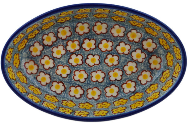 This Popcorn Daisies 6" Condiment Dish was handmade and hand decorated in Boleslawiec, Poland by skilled artisans according to old traditional methods. This is a Polish pottery Signature Unikat, which means that it has been hand painted with both sponges and brushes and it is signed by the artist who painted it. Unikat pieces are the most intricate works of art. Larger Unikat items take hours of very careful work to finish. This Polish stoneware is microwave, dishwasher, freezer, and oven safe up to 480°F. It does not contain lead or cadmium. It is part of the Popcorn Daisies Collection.