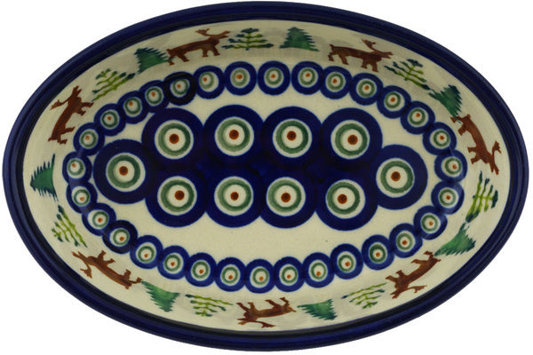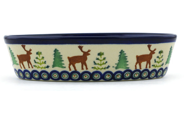This Reindeer In The Pines 6" Condiment Dish was handmade and hand decorated in Boleslawiec, Poland by skilled artisans according to old traditional methods. This Polish stoneware is microwave, dishwasher, freezer, and oven safe up to 480°F. It does not contain lead or cadmium. It is part of the Reindeer In The Pines Collection.