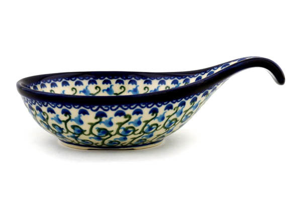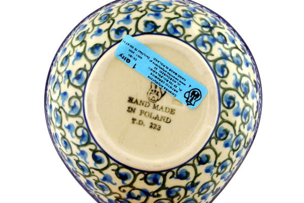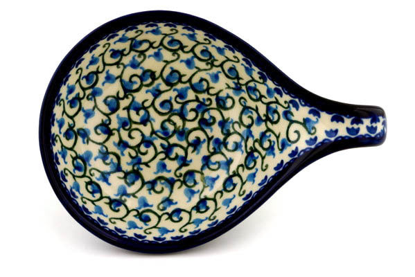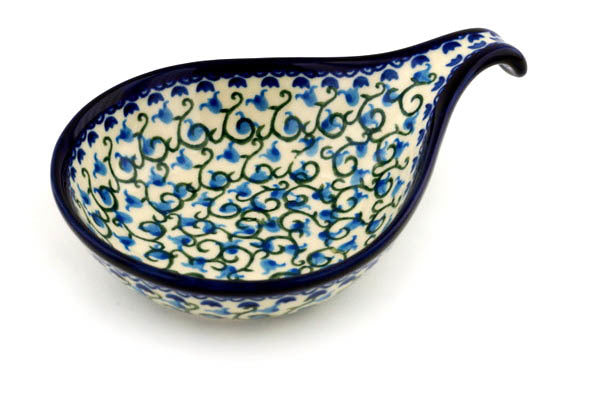 This Blue Bell Vine 7" Condiment Dish was handmade and hand decorated in Boleslawiec, Poland by skilled artisans according to old traditional methods. This Polish stoneware is microwave, dishwasher, freezer, and oven safe up to 480°F. It does not contain lead or cadmium. It is part of the Blue Bell Vine Collection.