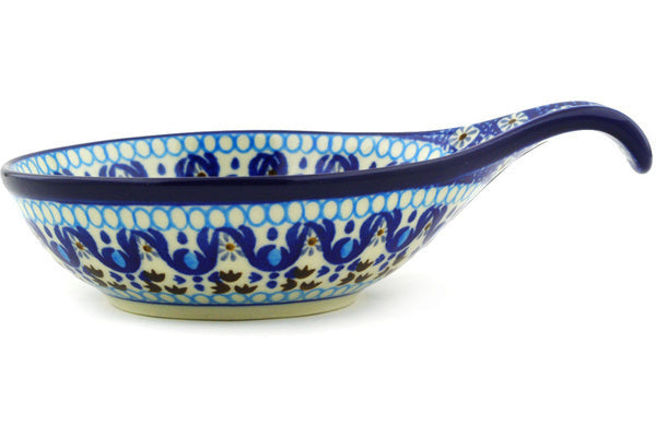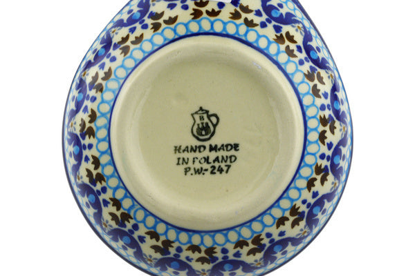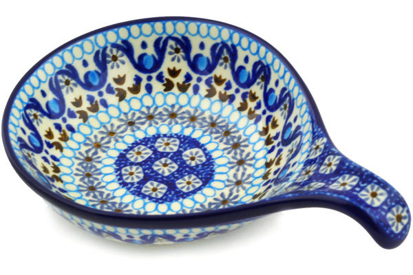 This Blue Ice 7" Condiment Dish was handmade and hand decorated in Boleslawiec, Poland by skilled artisans according to old traditional methods. This Polish stoneware is microwave, dishwasher, freezer, and oven safe up to 480°F. It does not contain lead or cadmium. It is part of the Blue Ice Collection.