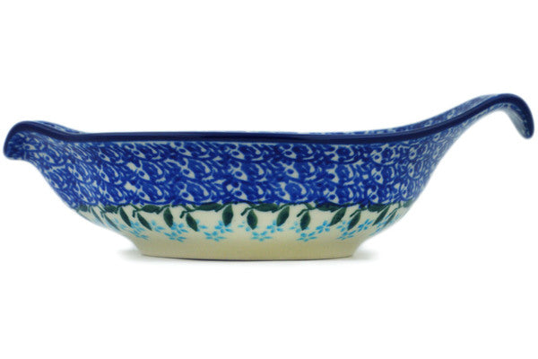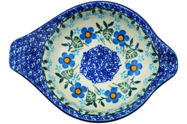 This Blue Joy 7" Condiment Dish was handmade and hand decorated in Boleslawiec, Poland by skilled artisans according to old traditional methods. This Polish stoneware is microwave, dishwasher, freezer, and oven safe up to 480°F. It does not contain lead or cadmium. It is part of the Blue Joy Collection.