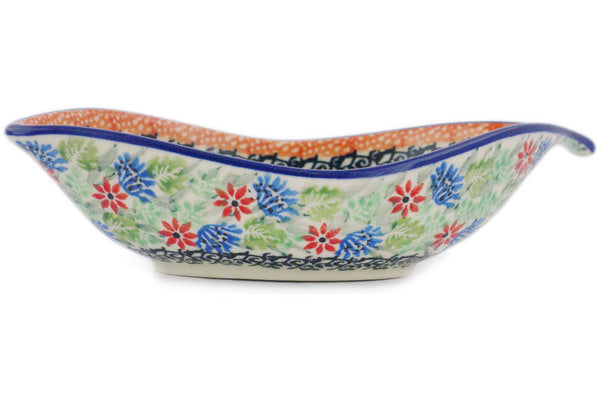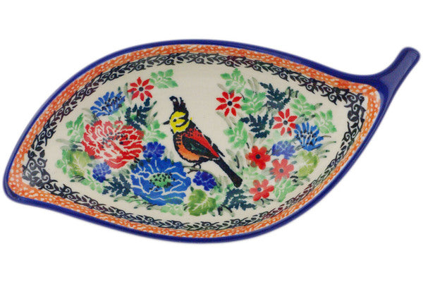 This Resting Bird 6" Condiment Dish was handmade and hand decorated in Boleslawiec, Poland by skilled artisans according to old traditional methods. This is a Polish pottery Signature Unikat, which means that it has been hand painted with both sponges and brushes and it is signed by the artist who painted it. Unikat pieces are the most intricate works of art. Larger Unikat items take hours of very careful work to finish. This Polish stoneware is microwave, dishwasher, freezer, and oven safe up to 480°F. It does not contain lead or cadmium. It is part of the Resting Bird Collection.