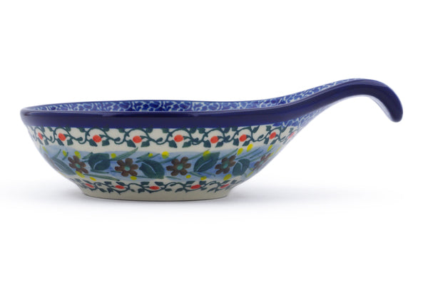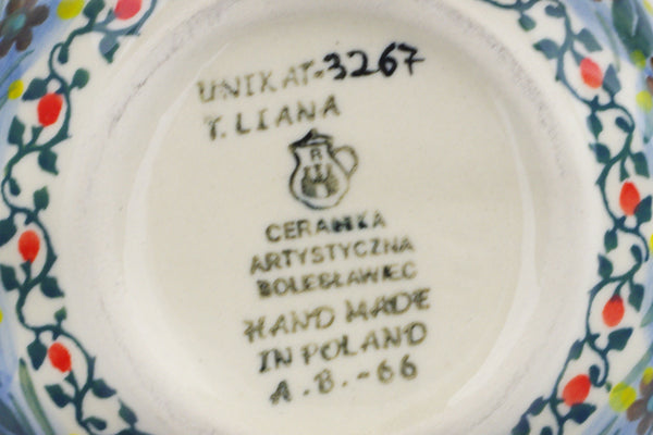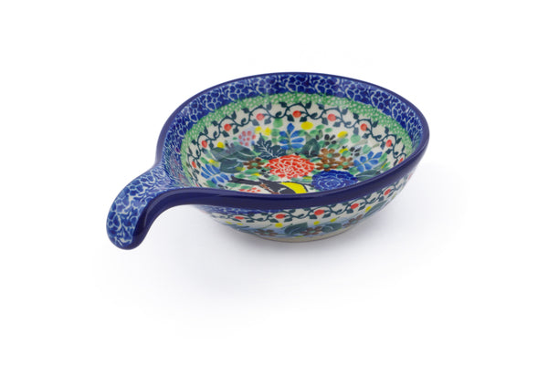 This Robbin's Meadow 7" Condiment Dish was handmade and hand decorated in Boleslawiec, Poland by skilled artisans according to old traditional methods. This is a Polish pottery Signature Unikat, which means that it has been hand painted with both sponges and brushes and it is signed by the artist who painted it. Unikat pieces are the most intricate works of art. Larger Unikat items take hours of very careful work to finish. This Polish stoneware is microwave, dishwasher, freezer, and oven safe up to 480°F. It does not contain lead or cadmium. It is part of the Robbin's Meadow Collection.