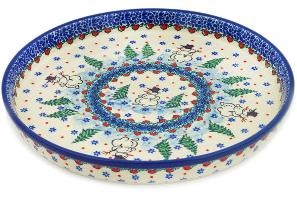 This Dancing Snowman 10" Cookie Platter was handmade and hand decorated in Boleslawiec, Poland by skilled artisans according to old traditional methods. This is a Polish pottery Signature Unikat, which means that it has been hand painted with both sponges and brushes and it is signed by the artist who painted it. Unikat pieces are the most intricate works of art. Larger Unikat items take hours of very careful work to finish. This Polish stoneware is microwave, dishwasher, freezer, and oven safe up to 480°F. It does not contain lead or cadmium. It is part of the Dancing Snowman Collection.