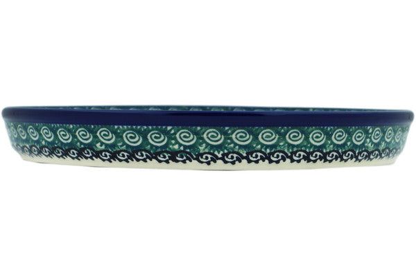 This Swirling Emeralds 10" Cookie Platter was handmade and hand decorated in Boleslawiec, Poland by skilled artisans according to old traditional methods. This Polish stoneware is microwave, dishwasher, freezer, and oven safe up to 480°F. It does not contain lead or cadmium. It is part of the Swirling Emeralds Collection.