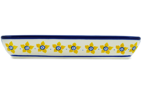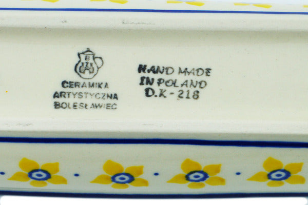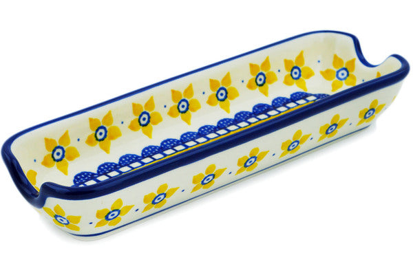 This Sunshine 8" Corn Tray was handmade and hand decorated in Boleslawiec, Poland by skilled artisans according to old traditional methods. This Polish stoneware is microwave, dishwasher, freezer, and oven safe up to 480°F. It does not contain lead or cadmium. It is part of the Sunshine Collection.