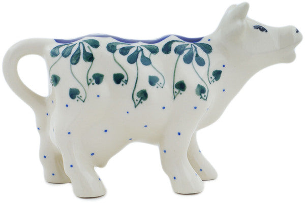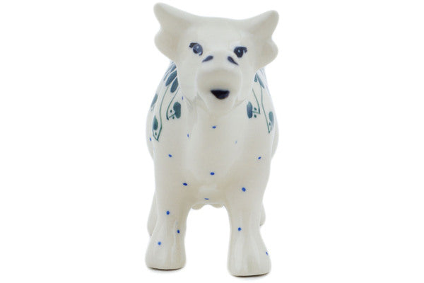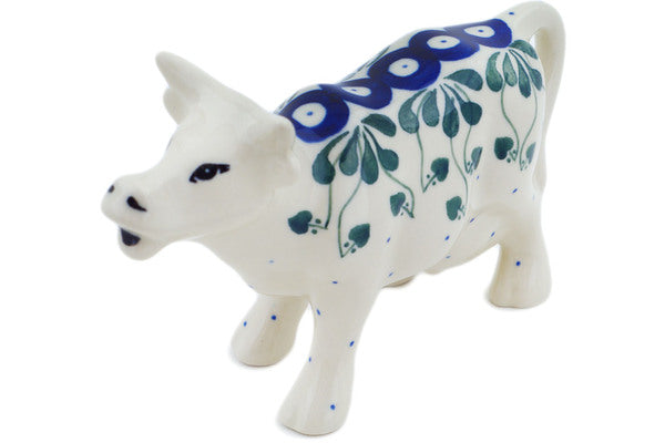 This Bleeding Heart Peacock 6" Cow Figurine was handmade and hand decorated in Boleslawiec, Poland by skilled artisans according to old traditional methods. This Polish stoneware is microwave, dishwasher, freezer, and oven safe up to 480°F. It does not contain lead or cadmium. It is part of the Bleeding Heart Peacock Collection.