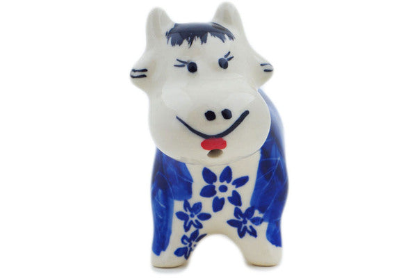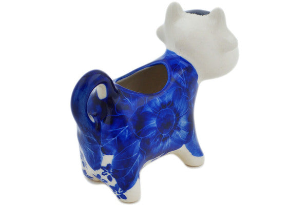 This Divine Cobalt 2 oz Cow Shaped Creamer was handmade and hand decorated in Boleslawiec, Poland by skilled artisans according to old traditional methods. This is a Polish pottery Signature Unikat, which means that it has been hand painted with both sponges and brushes and it is signed by the artist who painted it. Unikat pieces are the most intricate works of art. Larger Unikat items take hours of very careful work to finish. This Polish stoneware is microwave, dishwasher, freezer, and oven safe up to 480°F. It does not contain lead or cadmium. It is part of the Divine Cobalt Collection.