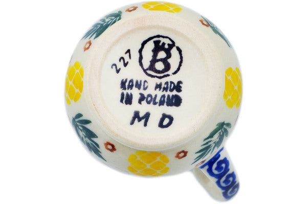 This Pineapple Parade 4 oz Creamer was handmade and hand decorated in Boleslawiec, Poland by skilled artisans according to old traditional methods. This Polish stoneware is microwave, dishwasher, freezer, and oven safe up to 480°F. It does not contain lead or cadmium. It is part of the Pineapple Parade Collection.