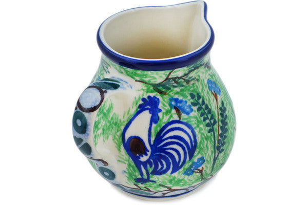 This Blue Rooster 7 oz Creamer was handmade and hand decorated in Boleslawiec, Poland by skilled artisans according to old traditional methods. This is a Polish pottery Signature Unikat, which means that it has been hand painted with both sponges and brushes and it is signed by the artist who painted it. Unikat pieces are the most intricate works of art. Larger Unikat items take hours of very careful work to finish. This Polish stoneware is microwave, dishwasher, freezer, and oven safe up to 480°F. It does not contain lead or cadmium. It is part of the Blue Rooster Collection.