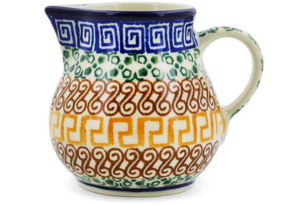 This Grecian Sea 7 oz Creamer was handmade and hand decorated in Boleslawiec, Poland by skilled artisans according to old traditional methods. This Polish stoneware is microwave, dishwasher, freezer, and oven safe up to 480°F. It does not contain lead or cadmium. It is part of the Grecian Sea Collection.