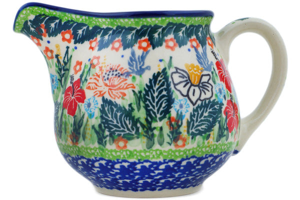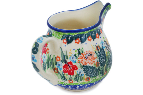 This Dove Escape 8 oz Creamer was handmade and hand decorated in Boleslawiec, Poland by skilled artisans according to old traditional methods. This is a Polish pottery Signature Unikat, which means that it has been hand painted with both sponges and brushes and it is signed by the artist who painted it. Unikat pieces are the most intricate works of art. Larger Unikat items take hours of very careful work to finish. This Polish stoneware is microwave, dishwasher, freezer, and oven safe up to 480°F. It does not contain lead or cadmium. It is part of the Dove Escape Collection.