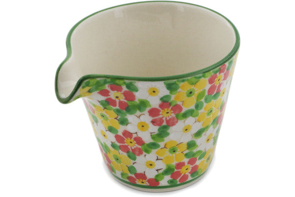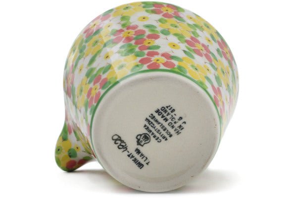 This Fertile Meadow 8 oz Creamer was handmade and hand decorated in Boleslawiec, Poland by skilled artisans according to old traditional methods. This is a Polish pottery Signature Unikat, which means that it has been hand painted with both sponges and brushes and it is signed by the artist who painted it. Unikat pieces are the most intricate works of art. Larger Unikat items take hours of very careful work to finish. This Polish stoneware is microwave, dishwasher, freezer, and oven safe up to 480°F. It does not contain lead or cadmium. It is part of the Fertile Meadow Collection.