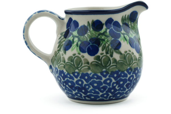 This Blueberry Fields Forever Small Creamer was handmade and hand decorated in Boleslawiec, Poland by skilled artisans according to old traditional methods. This Polish stoneware is microwave, dishwasher, freezer, and oven safe up to 480°F. It does not contain lead or cadmium. It is part of the Blueberry Fields Forever Collection.