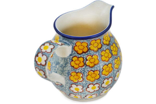 This Popcorn Daisies Small Creamer was handmade and hand decorated in Boleslawiec, Poland by skilled artisans according to old traditional methods. This is a Polish pottery Signature Unikat, which means that it has been hand painted with both sponges and brushes and it is signed by the artist who painted it. Unikat pieces are the most intricate works of art. Larger Unikat items take hours of very careful work to finish. This Polish stoneware is microwave, dishwasher, freezer, and oven safe up to 480°F. It does not contain lead or cadmium. It is part of the Popcorn Daisies Collection.