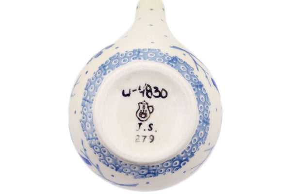 This Waiting Birds 5 oz Creamer with Lid was handmade and hand decorated in Boleslawiec, Poland by skilled artisans according to old traditional methods. This is a Polish pottery Signature Unikat, which means that it has been hand painted with both sponges and brushes and it is signed by the artist who painted it. Unikat pieces are the most intricate works of art. Larger Unikat items take hours of very careful work to finish. This Polish stoneware is microwave, dishwasher, freezer, and oven safe up to 480°F. It does not contain lead or cadmium. It is part of the Waiting Birds Collection.