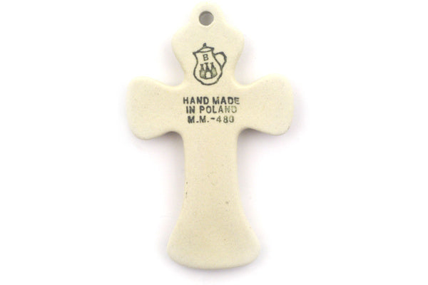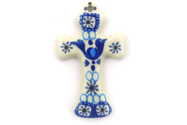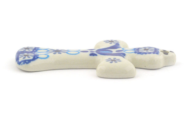 This Blue Ice 3" Cross was handmade and hand decorated in Boleslawiec, Poland by skilled artisans according to old traditional methods. This Polish stoneware is microwave, dishwasher, freezer, and oven safe up to 480°F. It does not contain lead or cadmium. It is part of the Blue Ice Collection.