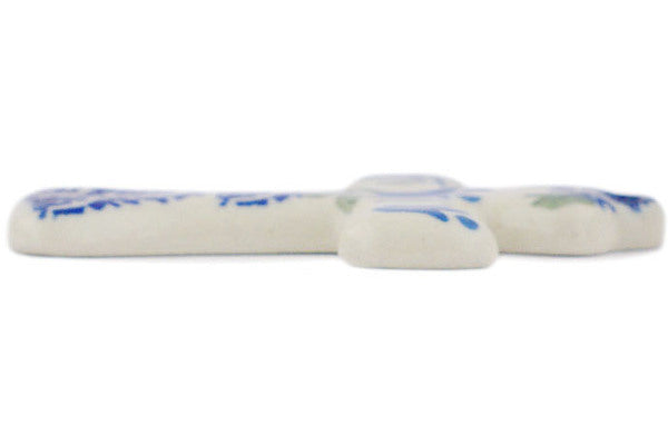 This Blue Tulip 3" Cross was handmade and hand decorated in Boleslawiec, Poland by skilled artisans according to old traditional methods. This Polish stoneware is microwave, dishwasher, freezer, and oven safe up to 480°F. It does not contain lead or cadmium. It is part of the Blue Tulip Collection.