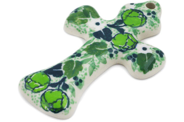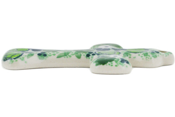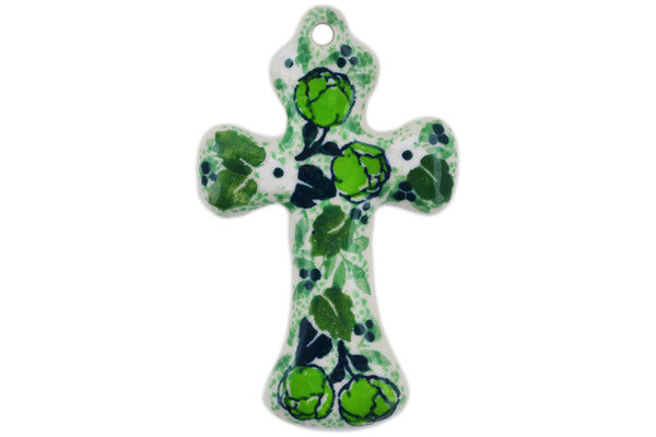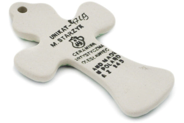 This Daisies Wreath 3" Cross was handmade and hand decorated in Boleslawiec, Poland by skilled artisans according to old traditional methods. This is a Polish pottery Signature Unikat, which means that it has been hand painted with both sponges and brushes and it is signed by the artist who painted it. Unikat pieces are the most intricate works of art. Larger Unikat items take hours of very careful work to finish. This Polish stoneware is microwave, dishwasher, freezer, and oven safe up to 480°F. It does not contain lead or cadmium. It is part of the Daisies Wreath Collection.