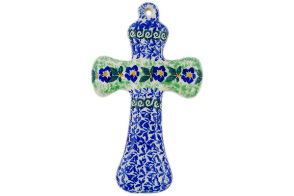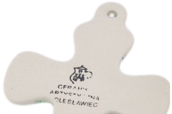 This Infinity Flower 5" Cross was handmade and hand decorated in Boleslawiec, Poland by skilled artisans according to old traditional methods. This Polish stoneware is microwave, dishwasher, freezer, and oven safe up to 480°F. It does not contain lead or cadmium. It is part of the Infinity Flower Collection.