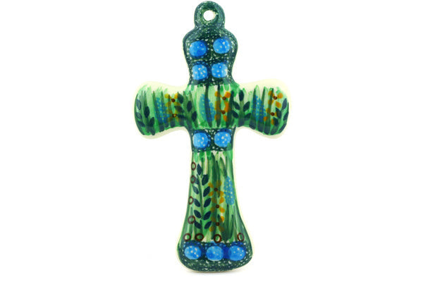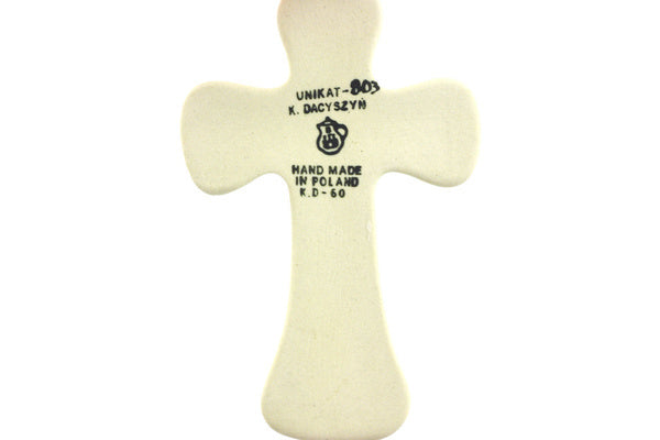 This Prairie Land 5" Cross was handmade and hand decorated in Boleslawiec, Poland by skilled artisans according to old traditional methods. This is a Polish pottery Signature Unikat, which means that it has been hand painted with both sponges and brushes and it is signed by the artist who painted it. Unikat pieces are the most intricate works of art. Larger Unikat items take hours of very careful work to finish. This Polish stoneware is microwave, dishwasher, freezer, and oven safe up to 480°F. It does not contain lead or cadmium. It is part of the Prairie Land Collection.