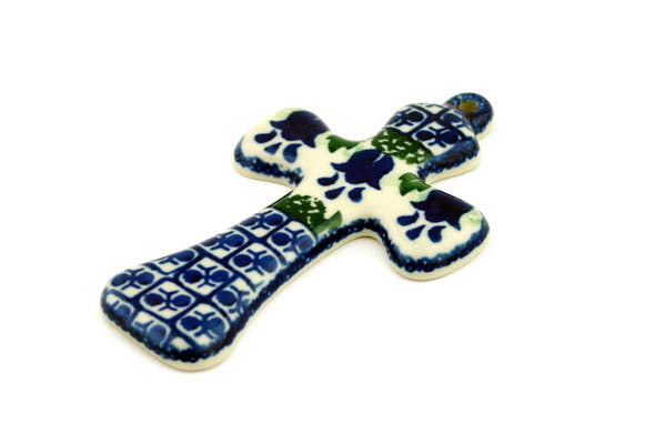 This Texas Bluebell 5" Cross was handmade and hand decorated in Boleslawiec, Poland by skilled artisans according to old traditional methods. This Polish stoneware is microwave, dishwasher, freezer, and oven safe up to 480°F. It does not contain lead or cadmium. It is part of the Texas Bluebell Collection.