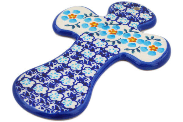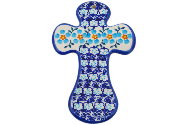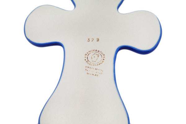 This Blue Chain 7" Cross was handmade and hand decorated in Boleslawiec, Poland by skilled artisans according to old traditional methods. This is a Polish pottery Signature Unikat, which means that it has been hand painted with both sponges and brushes and it is signed by the artist who painted it. Unikat pieces are the most intricate works of art. Larger Unikat items take hours of very careful work to finish. This Polish stoneware is microwave, dishwasher, freezer, and oven safe up to 480°F. It does not contain lead or cadmium. It is part of the Blue Chain Collection.