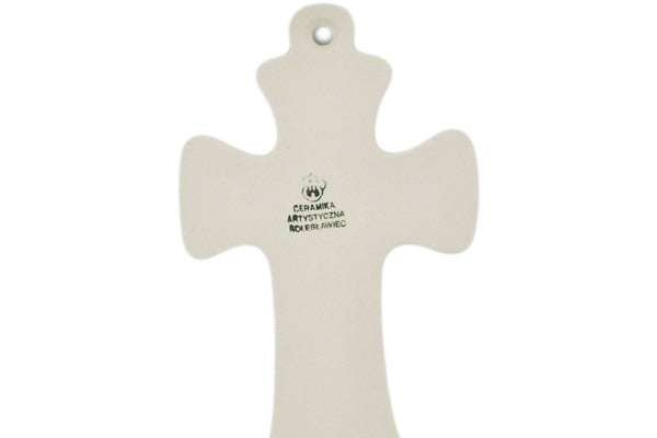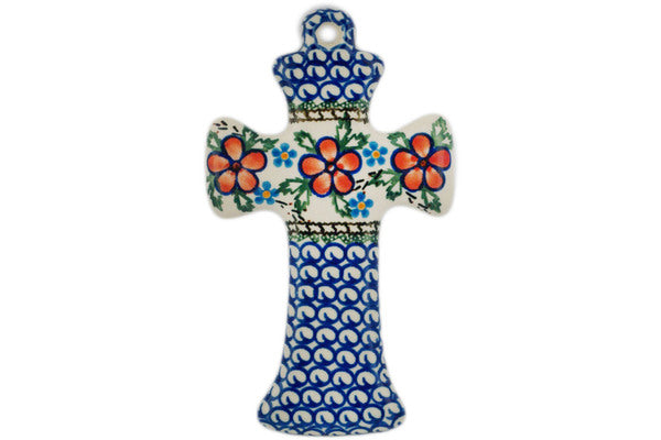 This Lancaster Rose 7" Cross was handmade and hand decorated in Boleslawiec, Poland by skilled artisans according to old traditional methods. This Polish stoneware is microwave, dishwasher, freezer, and oven safe up to 480°F. It does not contain lead or cadmium. It is part of the Lancaster Rose Collection.