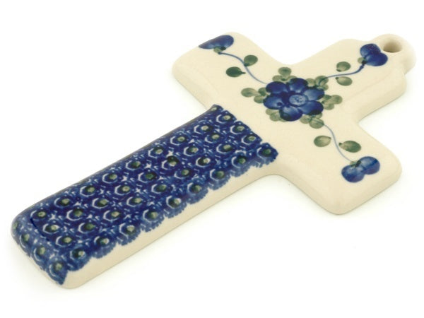 This Blue Poppies 8" Cross was handmade and hand decorated in Boleslawiec, Poland by skilled artisans according to old traditional methods. This Polish stoneware is microwave, dishwasher, freezer, and oven safe up to 480°F. It does not contain lead or cadmium. It is part of the Blue Poppies Collection.