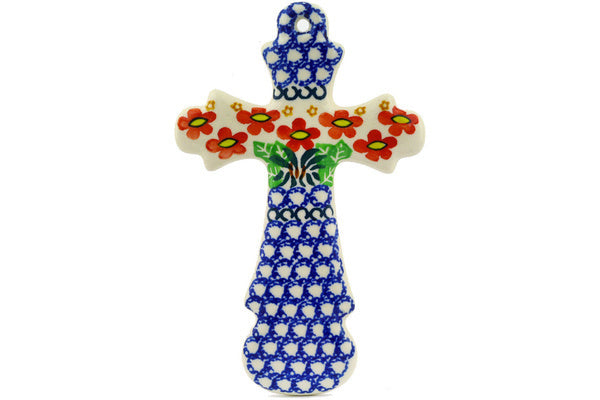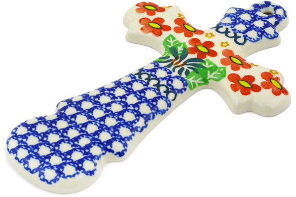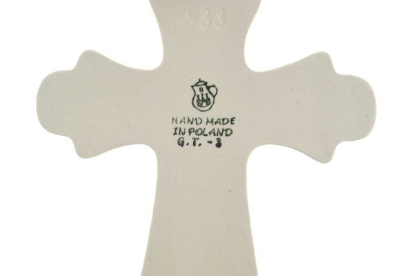 This Buenos Dias 8" Cross was handmade and hand decorated in Boleslawiec, Poland by skilled artisans according to old traditional methods. This Polish stoneware is microwave, dishwasher, freezer, and oven safe up to 480°F. It does not contain lead or cadmium. It is part of the Buenos Dias Collection.