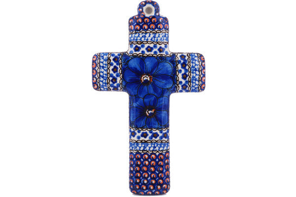 This Cobalt Poppies 8" Cross was handmade and hand decorated in Boleslawiec, Poland by skilled artisans according to old traditional methods. This is a Polish pottery Signature Unikat, which means that it has been hand painted with both sponges and brushes and it is signed by the artist who painted it. Unikat pieces are the most intricate works of art. Larger Unikat items take hours of very careful work to finish. This Polish stoneware is microwave, dishwasher, freezer, and oven safe up to 480°F. It does not contain lead or cadmium. It is part of the Cobalt Poppies Collection.