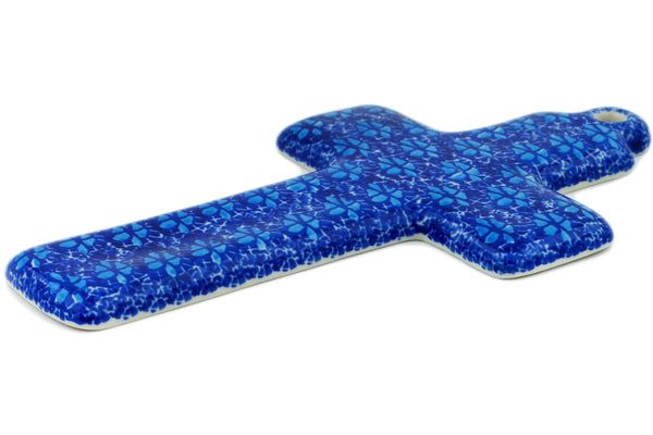 This Deep Into The Blue Sea 8" Cross was handmade and hand decorated in Boleslawiec, Poland by skilled artisans according to old traditional methods. This Polish stoneware is microwave, dishwasher, freezer, and oven safe up to 480°F. It does not contain lead or cadmium. It is part of the Deep Into The Blue Sea Collection.