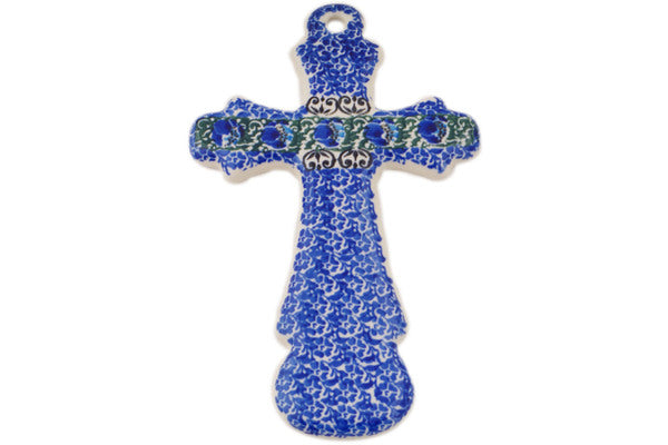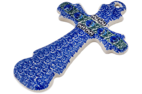 This Emerald Tulips 8" Cross was handmade and hand decorated in Boleslawiec, Poland by skilled artisans according to old traditional methods. This Polish stoneware is microwave, dishwasher, freezer, and oven safe up to 480°F. It does not contain lead or cadmium. It is part of the Emerald Tulips Collection.