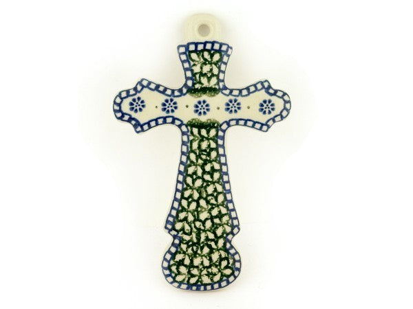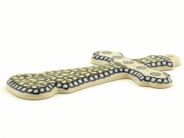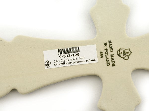 This Maia 8" Cross was handmade and hand decorated in Boleslawiec, Poland by skilled artisans according to old traditional methods. This Polish stoneware is microwave, dishwasher, freezer, and oven safe up to 480°F. It does not contain lead or cadmium. It is part of the Maia Collection.