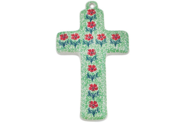 This Maraschino 8" Cross was handmade and hand decorated in Boleslawiec, Poland by skilled artisans according to old traditional methods. This Polish stoneware is microwave, dishwasher, freezer, and oven safe up to 480°F. It does not contain lead or cadmium. It is part of the Maraschino Collection.
