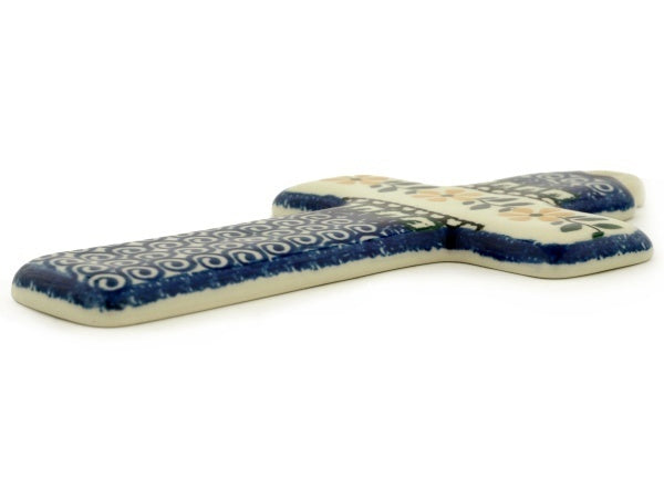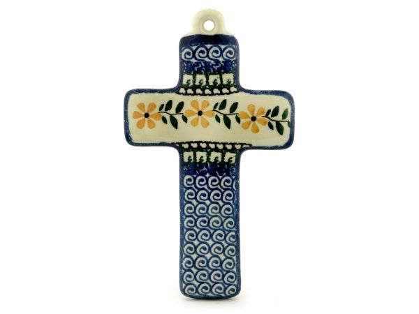 This Yellow Daisy Swirls 8" Cross was handmade and hand decorated in Boleslawiec, Poland by skilled artisans according to old traditional methods. This Polish stoneware is microwave, dishwasher, freezer, and oven safe up to 480°F. It does not contain lead or cadmium. It is part of the Yellow Daisy Swirls Collection.