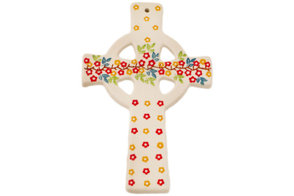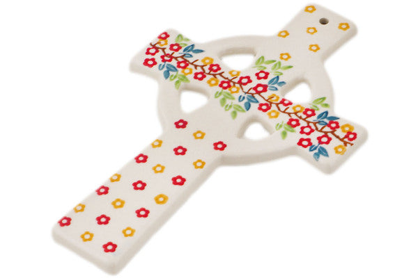 This Tropical Bloomscape 9" Cross was handmade and hand decorated in Boleslawiec, Poland by skilled artisans according to old traditional methods. This Polish stoneware is microwave, dishwasher, freezer, and oven safe up to 480°F. It does not contain lead or cadmium. It is part of the Tropical Bloomscape Collection.