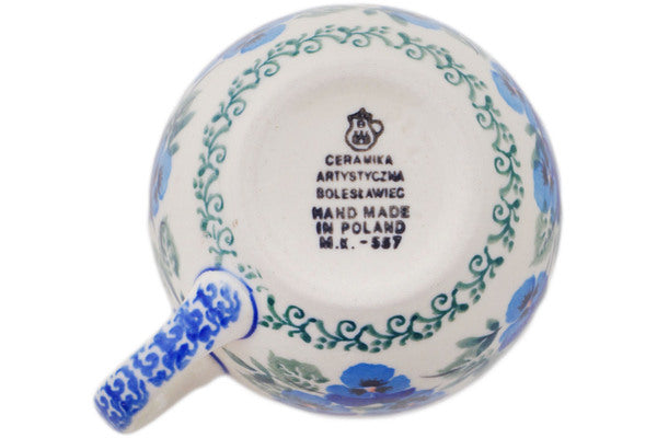 This Blue Pansy 3 oz Cup was handmade and hand decorated in Boleslawiec, Poland by skilled artisans according to old traditional methods. This Polish stoneware is microwave, dishwasher, freezer, and oven safe up to 480°F. It does not contain lead or cadmium. It is part of the Blue Pansy Collection.