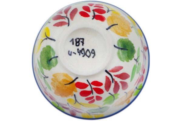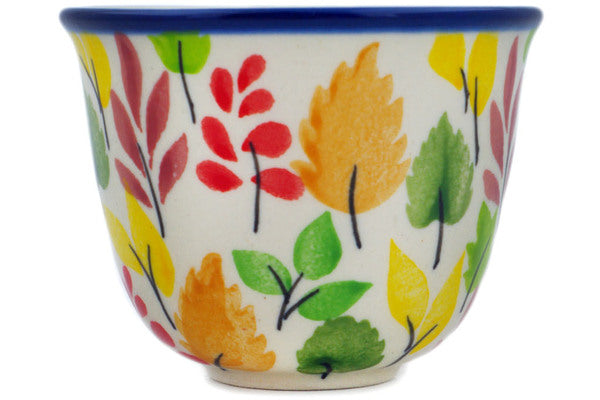 This Falling For You 3 oz Cup was handmade and hand decorated in Boleslawiec, Poland by skilled artisans according to old traditional methods. This is a Polish pottery Signature Unikat, which means that it has been hand painted with both sponges and brushes and it is signed by the artist who painted it. Unikat pieces are the most intricate works of art. Larger Unikat items take hours of very careful work to finish. This Polish stoneware is microwave, dishwasher, freezer, and oven safe up to 480°F. It does not contain lead or cadmium. It is part of the Falling For You Collection.