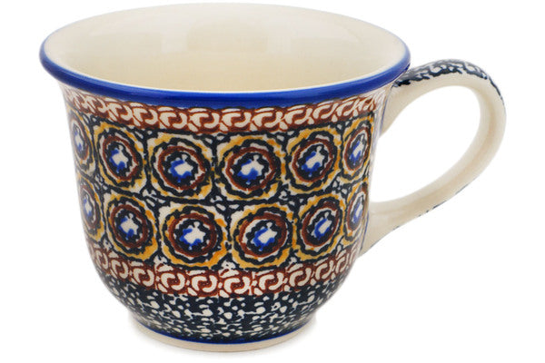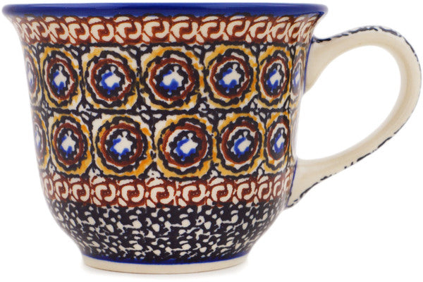 This Brown Beauty 6 oz Cup was handmade and hand decorated in Boleslawiec, Poland by skilled artisans according to old traditional methods. This is a Polish pottery Signature Unikat, which means that it has been hand painted with both sponges and brushes and it is signed by the artist who painted it. Unikat pieces are the most intricate works of art. Larger Unikat items take hours of very careful work to finish. This Polish stoneware is microwave, dishwasher, freezer, and oven safe up to 480°F. It does not contain lead or cadmium. It is part of the Brown Beauty Collection.