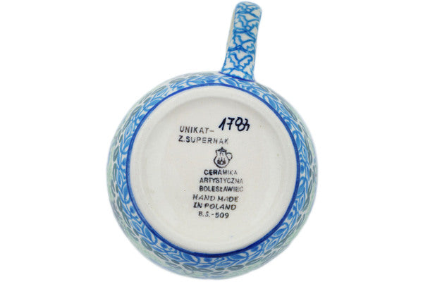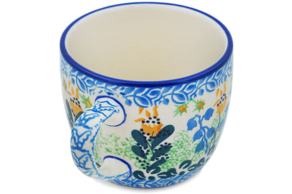 This Bluebells And Irises 7 oz Cup was handmade and hand decorated in Boleslawiec, Poland by skilled artisans according to old traditional methods. This is a Polish pottery Signature Unikat, which means that it has been hand painted with both sponges and brushes and it is signed by the artist who painted it. Unikat pieces are the most intricate works of art. Larger Unikat items take hours of very careful work to finish. This Polish stoneware is microwave, dishwasher, freezer, and oven safe up to 480°F. It does not contain lead or cadmium. It is part of the Bluebells And Irises Collection.