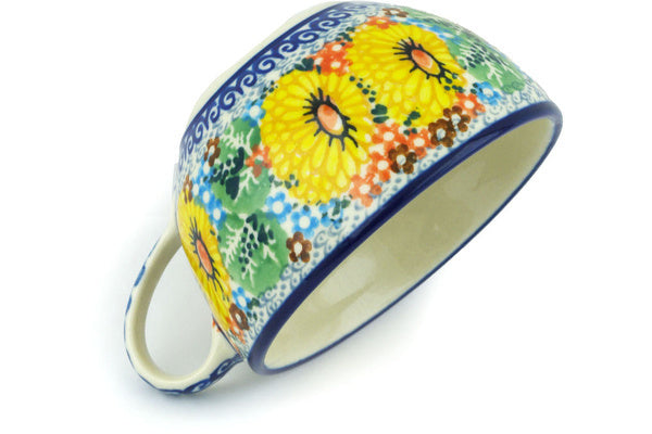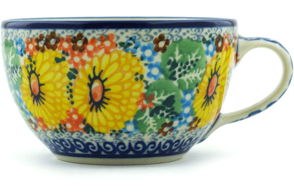 This Enchanted Spring 7 oz Cup was handmade and hand decorated in Boleslawiec, Poland by skilled artisans according to old traditional methods. This is a Polish pottery Signature Unikat, which means that it has been hand painted with both sponges and brushes and it is signed by the artist who painted it. Unikat pieces are the most intricate works of art. Larger Unikat items take hours of very careful work to finish. This Polish stoneware is microwave, dishwasher, freezer, and oven safe up to 480°F. It does not contain lead or cadmium. It is part of the Enchanted Spring Collection.
