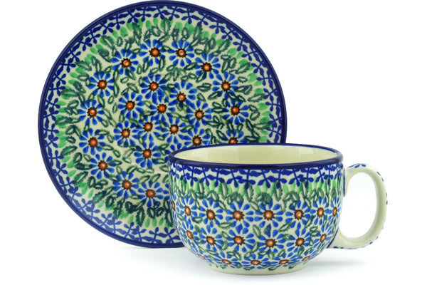 This Cactus 13 oz Cup with Saucer was handmade and hand decorated in Boleslawiec, Poland by skilled artisans according to old traditional methods. This is a Polish pottery Signature Unikat, which means that it has been hand painted with both sponges and brushes and it is signed by the artist who painted it. Unikat pieces are the most intricate works of art. Larger Unikat items take hours of very careful work to finish. This Polish stoneware is microwave, dishwasher, freezer, and oven safe up to 480°F. It does not contain lead or cadmium. It is part of the Cactus Collection.