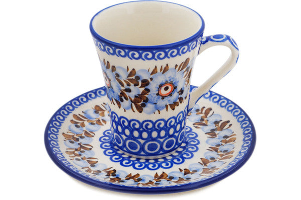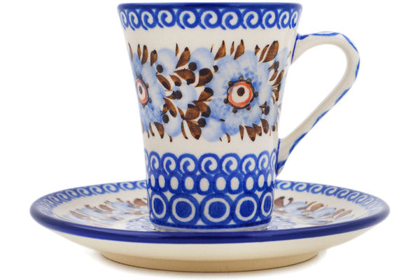 Cup with Saucer 5 oz Brown And Blue Beauty Theme UNIKAT