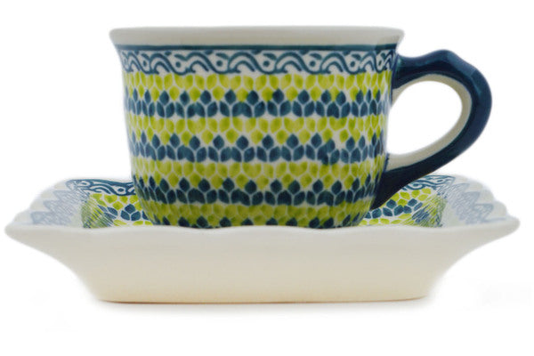 This Green Leaves 6 oz Cup with Saucer was handmade and hand decorated in Boleslawiec, Poland by skilled artisans according to old traditional methods. This Polish stoneware is microwave, dishwasher, freezer, and oven safe up to 480°F. It does not contain lead or cadmium. It is part of the Green Leaves Collection.
