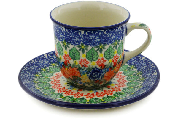 This Red Bouquet 7 oz Cup with Saucer was handmade and hand decorated in Boleslawiec, Poland by skilled artisans according to old traditional methods. This is a Polish pottery Signature Unikat, which means that it has been hand painted with both sponges and brushes and it is signed by the artist who painted it. Unikat pieces are the most intricate works of art. Larger Unikat items take hours of very careful work to finish. This Polish stoneware is microwave, dishwasher, freezer, and oven safe up to 480°F. It does not contain lead or cadmium. It is part of the Red Bouquet Collection.