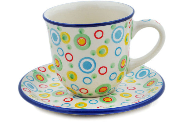 This Retro Olives 9 oz Cup with Saucer was handmade and hand decorated in Boleslawiec, Poland by skilled artisans according to old traditional methods. This is a Polish pottery Signature Unikat, which means that it has been hand painted with both sponges and brushes and it is signed by the artist who painted it. Unikat pieces are the most intricate works of art. Larger Unikat items take hours of very careful work to finish. This Polish stoneware is microwave, dishwasher, freezer, and oven safe up to 480°F. It does not contain lead or cadmium. It is part of the Retro Olives Collection.