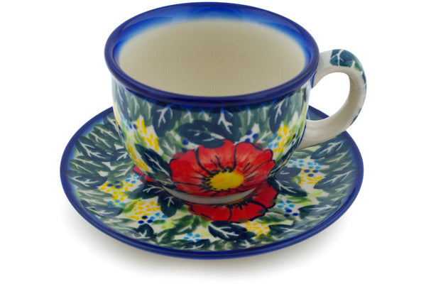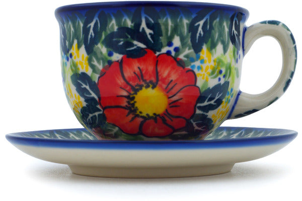 This Bloom Tales Cup with Saucer was handmade and hand decorated in Boleslawiec, Poland by skilled artisans according to old traditional methods. This is a Polish pottery Signature Unikat, which means that it has been hand painted with both sponges and brushes and it is signed by the artist who painted it. Unikat pieces are the most intricate works of art. Larger Unikat items take hours of very careful work to finish. This Polish stoneware is microwave, dishwasher, freezer, and oven safe up to 480°F. It does not contain lead or cadmium. It is part of the Bloom Tales Collection.