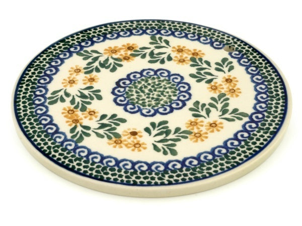 This Summer Day 7" Cutting Board was handmade and hand decorated in Boleslawiec, Poland by skilled artisans according to old traditional methods. This Polish stoneware is microwave, dishwasher, freezer, and oven safe up to 480°F. It does not contain lead or cadmium. It is part of the Summer Day Collection.