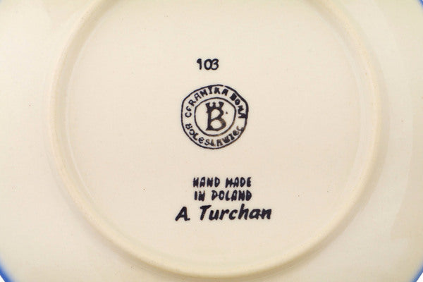 This Blue Thistle Beauty 7½-inch Dessert Plate was handmade and hand decorated in Boleslawiec, Poland by skilled artisans according to old traditional methods. This Polish stoneware is microwave, dishwasher, freezer, and oven safe up to 480°F. It does not contain lead or cadmium. It is part of the Blue Thistle Beauty Collection.
